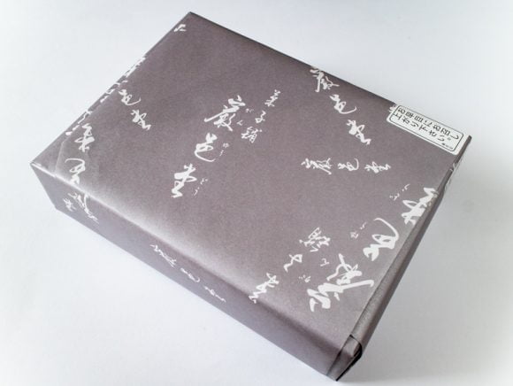 包装紙は明るめのグレーに「巌邑堂」の店名が入っており、落ち着いた印象を与えてくれますよ。