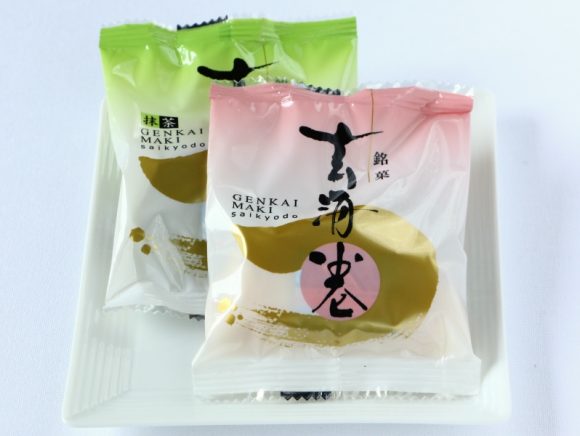 玄海巻はあんこと羽二重餅をカステラ生地で包んだ和菓子です。