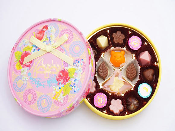 定番のミルクチョコレートやホワイトチョコレートに、オレンジ風味やさくら風味のチョコレートをアソートした詰め合わせです。