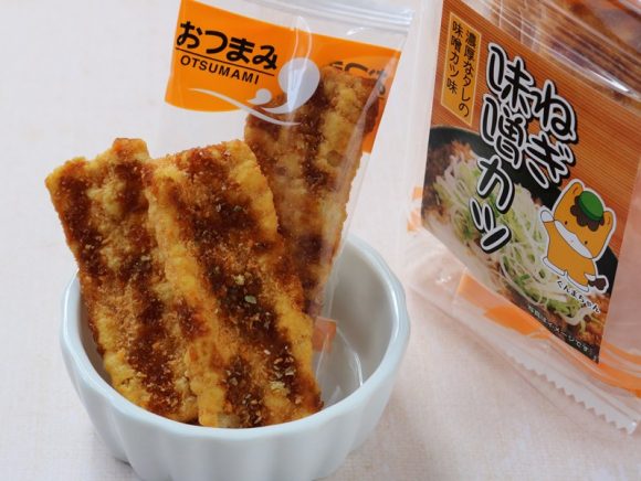 ねぎ味噌カツは、魚介のすり身で作ったカツをねぎ味噌風味のソースで味付けしたお菓子です。