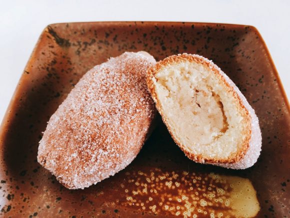外側の生地には、砂糖とシナモンがたっぷりまぶしてありジャリジャリとした食感。