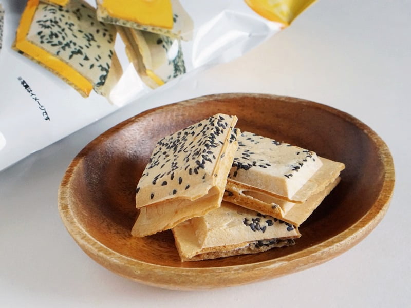 全体を食べてみると、チーズの塩気に胡麻の相性がよく、意外なほどクセになる味わいです。甘いお菓子が苦手な人にも食べやすいと思います。