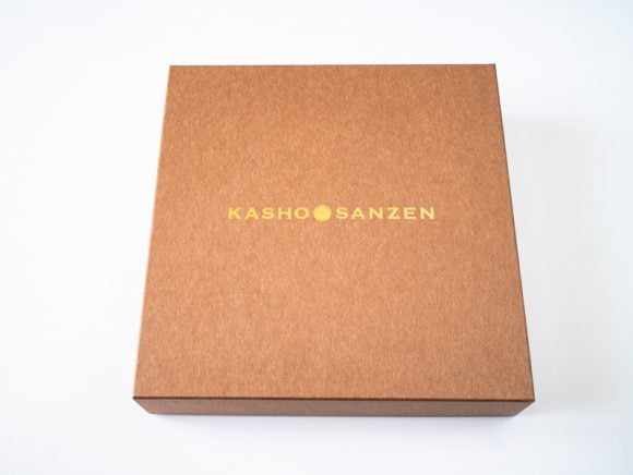 茶色の箱に「KASHO SANZEN」だけのシンプルなデザイン。箔押しの文字は品があり、落ち着いた印象を与えてくれます。