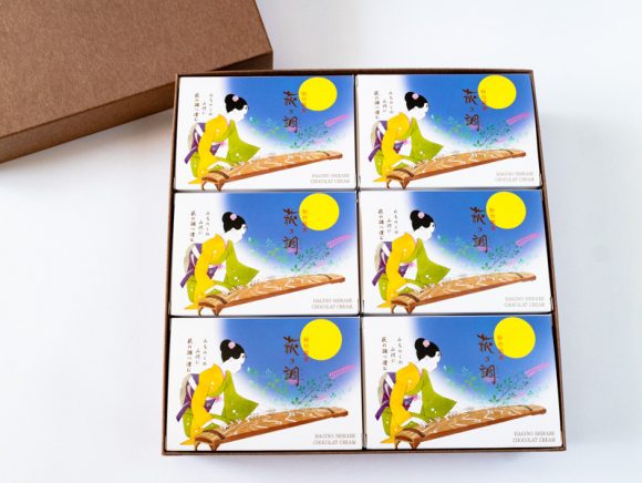 まずはパッケージです。萩の月は月夜に佇む着物の女性が描かれています。