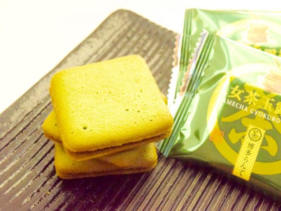 原口園はお茶の販売だけでなく仕入れたお茶を利用したお菓子も手がけています。その一つがこちらの”博多らんぐ 八女茶玉露抹茶”です。
