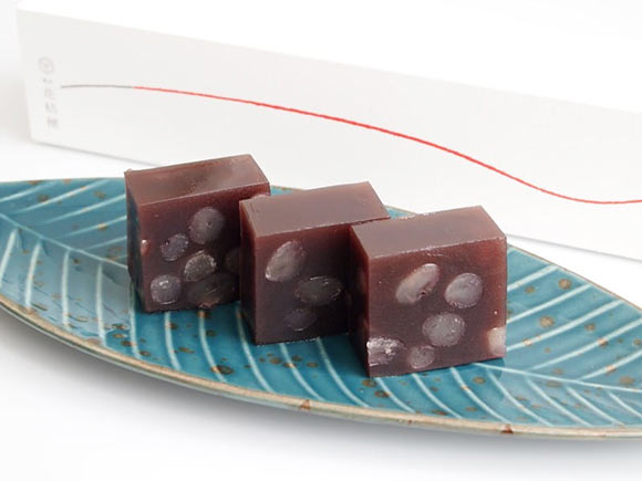 食感は、羊羹のねっとりした舌触りで大納言小豆の粒がアクセントになっています。