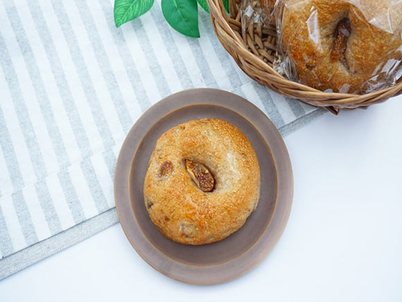 生地には有機くるみを練りこみ、有機いちじくをトッピングして焼き上げたこだわりのベーグルです。