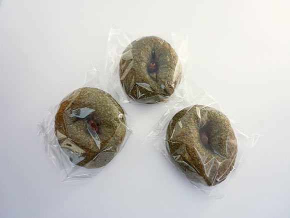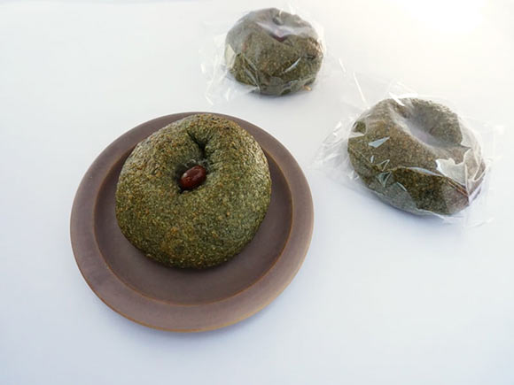 今回紹介する「よもぎ&甘納豆ベーグル」は、甘納豆をよもぎ生地で包んだ一品。