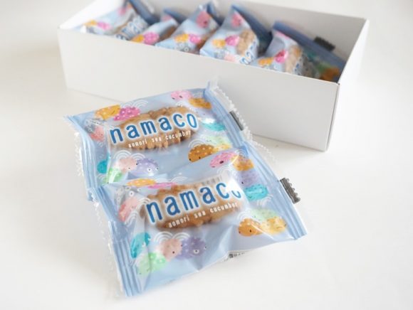 あおもりナマコは、ナマコをモチーフにしたキャラクターがかわいいお菓子。