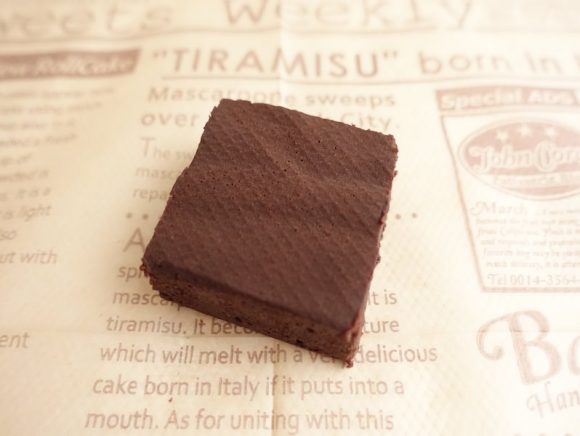 直接手にするとチョコレートが指についてしまうので、できればお皿やペーパーナプキンなどの上に出し、フォークで食べたいお菓子です。