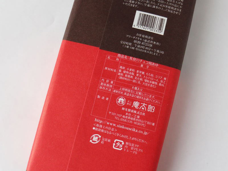 - 長良川銘菓チョコ飛あゆ 756円(税込)