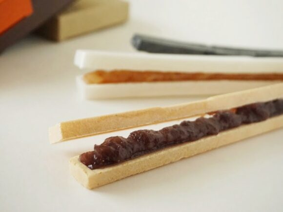 HIGASHIYA最中シリーズは、食べるときに最中種とあんを合わせて作る、スティックタイプの最中。