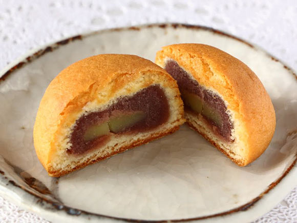 月をイメージした丸いおまんじゅうに、カスタードクリームとこし餡が入ったお菓子です。