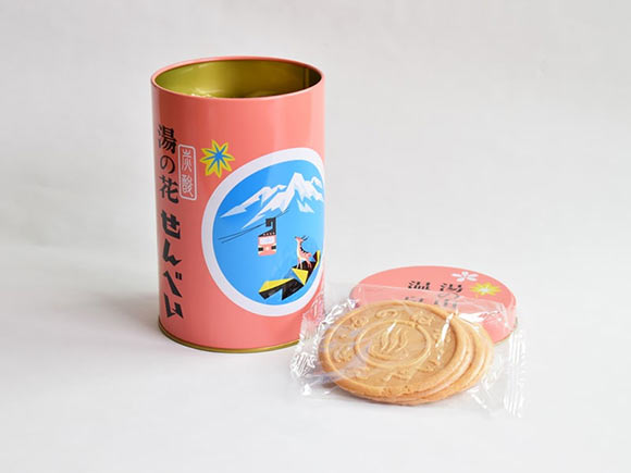 湯の花せんべいは、割れやすいため缶入りで販売されています。