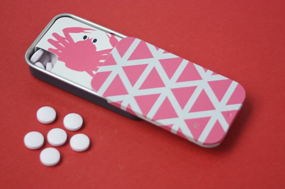 パッケージのふたを横にずらすと、カニのイラストがお目見え。