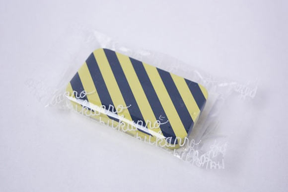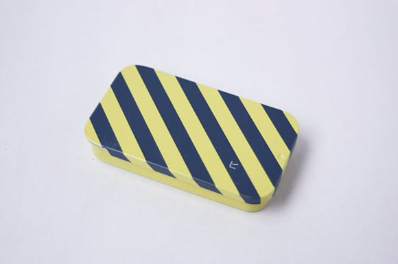 パッケージのふたは紺と黄色のストライプ模様、入れ物の部分は黄色とデザインもとても可愛いです。