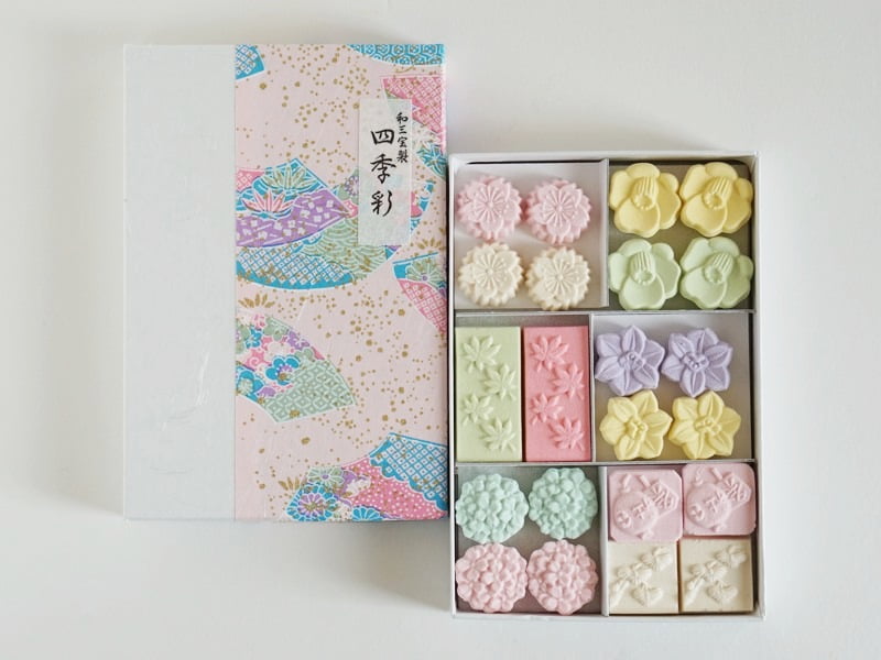 四季彩は、自然のなかの美しい花鳥風月を表現した和三盆糖の詰め合わせ。