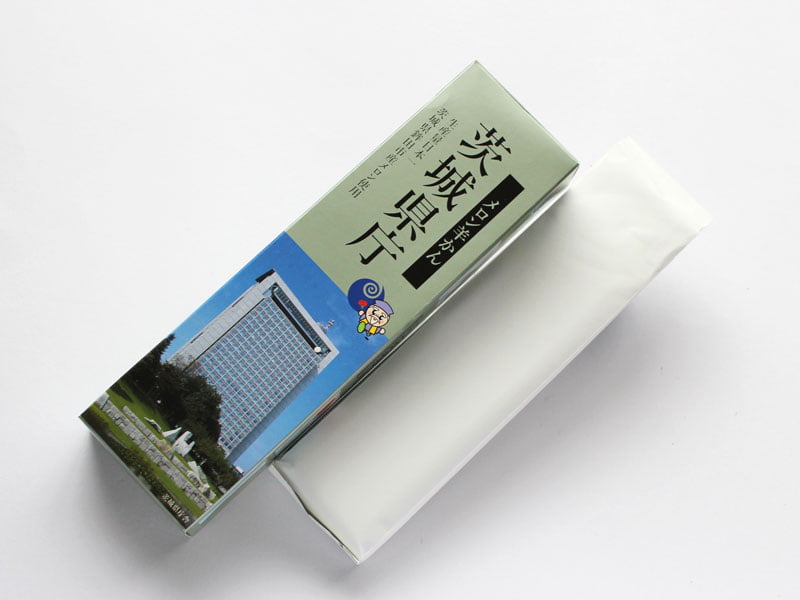 パッケージに描かれた茨城県庁の文字と写真。