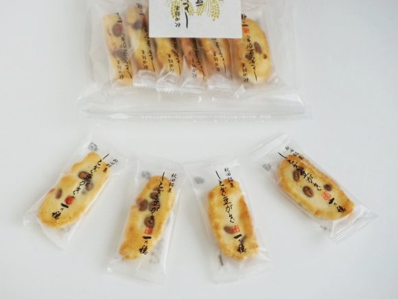 秋田県産もち米に黒豆を入れて焼き上げた、シンプルなおかきです。