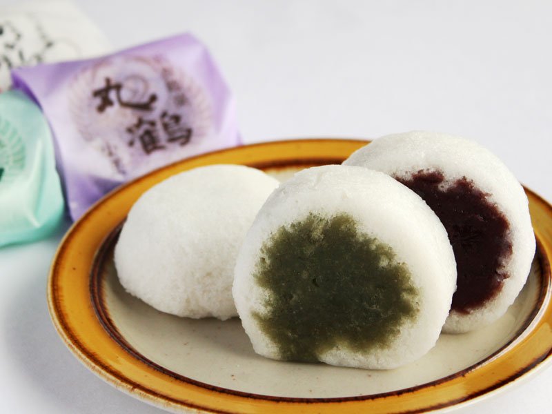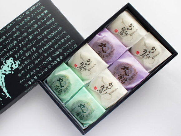 「菓心いちしめ 薩摩銘菓」には小豆とよもぎの2種類の丸鶴が入っていますよ。