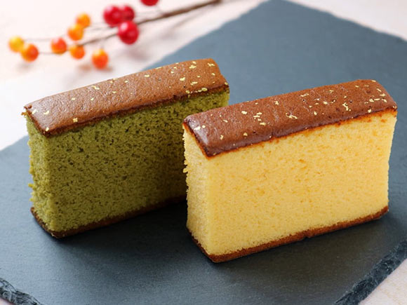今回ご紹介する「家康公のひときれカステラ」はそんな「金箔入日光カステラ」のハニー味と抹茶味を食べきりサイズにカットしたもの。
