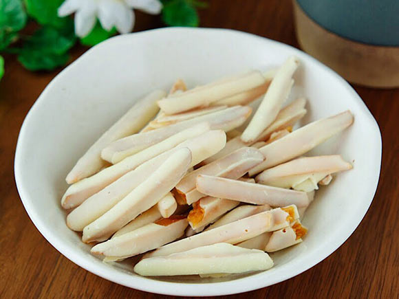 チョコがけけんぴ(ホワイトチョコ)は、100gあたり553kcal。