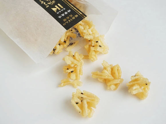 稲庭かりんとうは、日本三大うどんのひとつに数えられる、秋田名物の「稲庭うどん」を使ったお菓子。