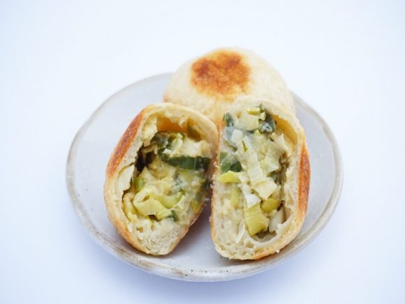 「ねぎみそ」は、甘辛い信州味噌と長ねぎを混ぜ合わせた具のおやきになっています。