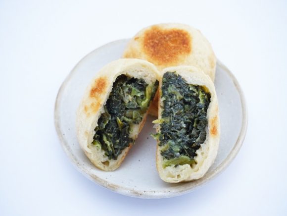 「野沢菜」は、長野の名産品である野沢菜漬けを使ったおやきです。