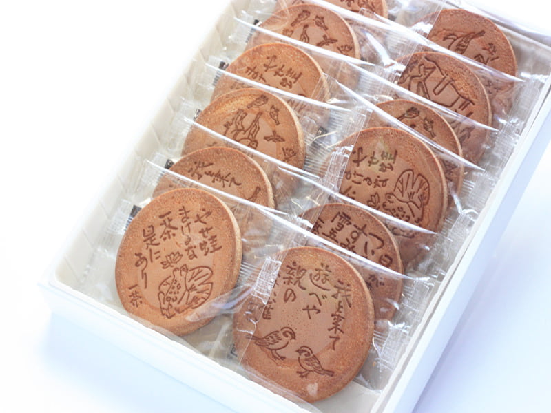 俳句の情景を思い描かせるようなイラストも同時に描かれており、視覚的にも楽しいお菓子になっていますよ。