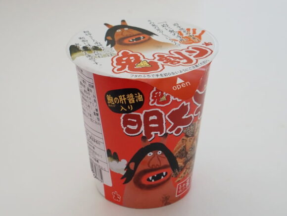 どこかひょうきんな顔をした鬼のイラストが印象的な、カップタイプのパッケージ。