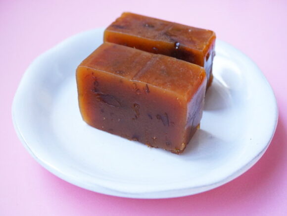 小豆を使っていないので、どことなくまろやかな色合いのようかんになっていますよ。