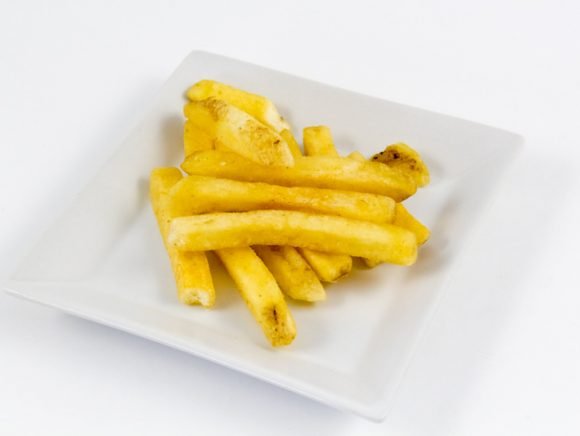 製造は皮ごとスティック状にカットして少量ずつ小さな釜で揚げているので、手作りに近い生産方法です。