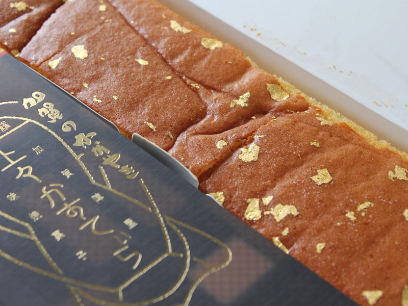 金箔が散りばめられた豪華なカステラは、お土産としてはもちろん贈答品としてもぴったりですね。
