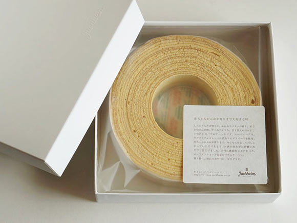 やさしいバウムクーヘンは、通常のものよりも甘さを控えた、やさしい味わいが特徴。