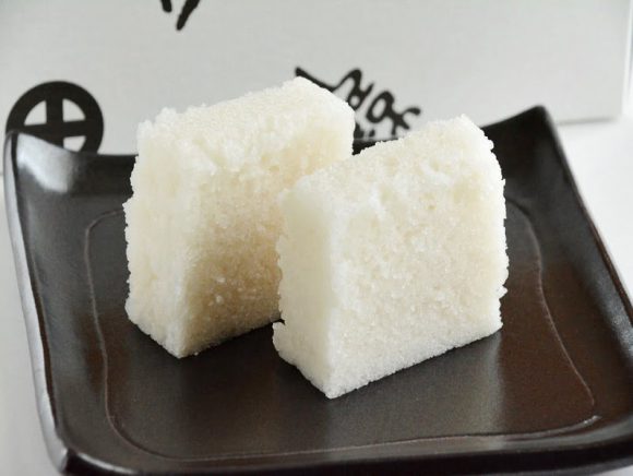 写真を見ているとまぶしく感じるほどの純白のかるかん。ふんわりやわらかな食感で口当たりがいいです。