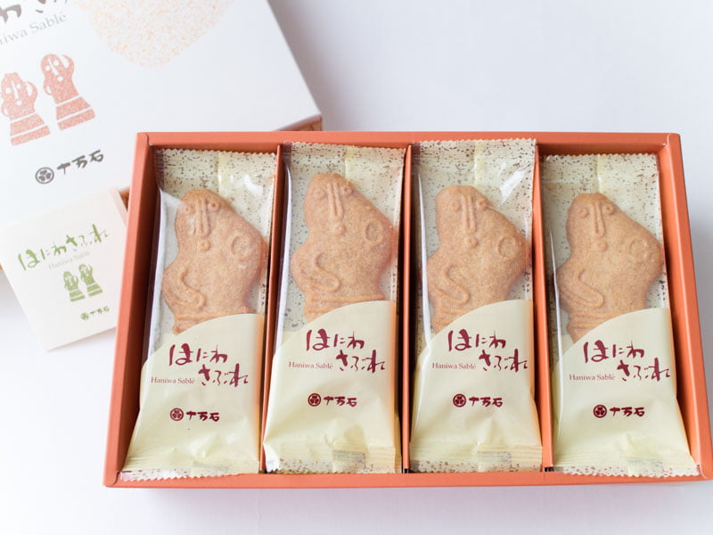 はにわさぶれは、その名のとおり埴輪の形をしたお菓子。埴輪の中でも広く知られている「踊る埴輪」の型なんですよ。