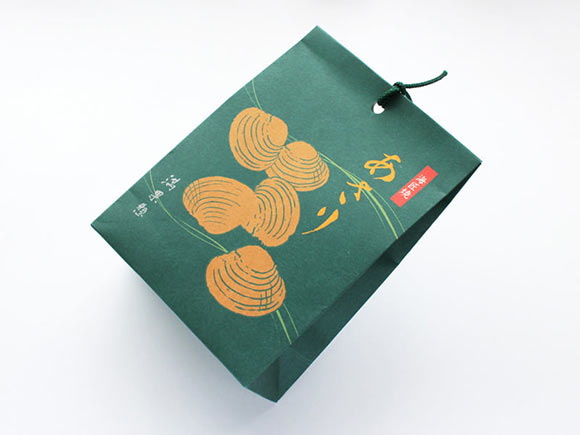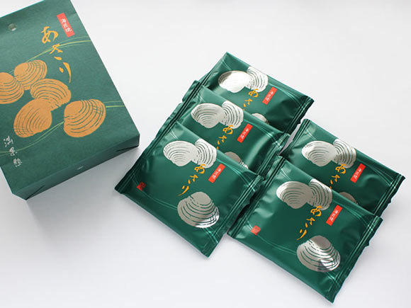 あさりのイラストが描かれた落ち着いた深緑のパッケージ。