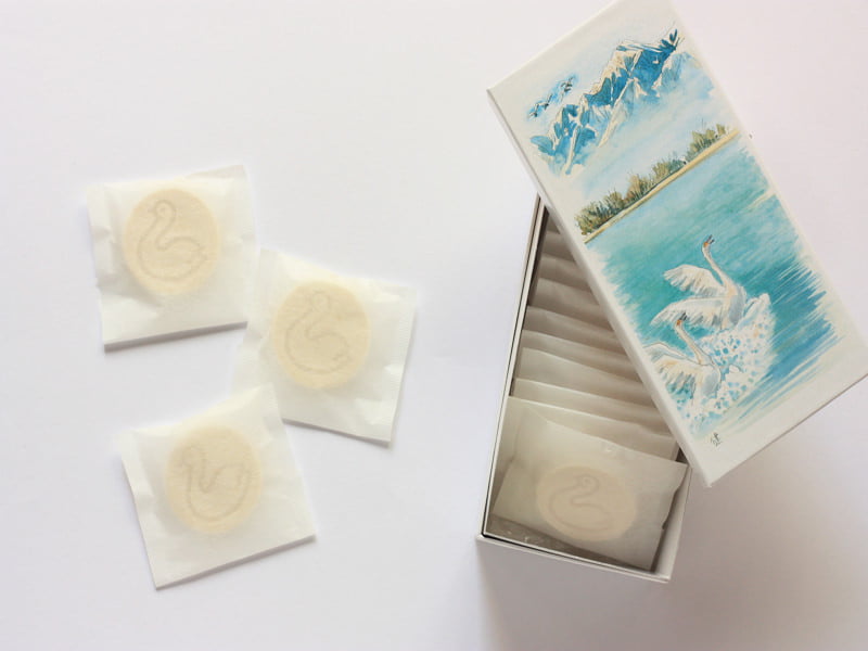 個包装されている袋はシンプルですが、よくよく見ると裏面に白鳥のシールが貼られています。