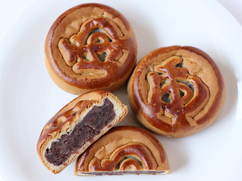 直径約7cm、厚み2.5cmと大ぶりで、ずっしり重量感のあるお饅頭です。