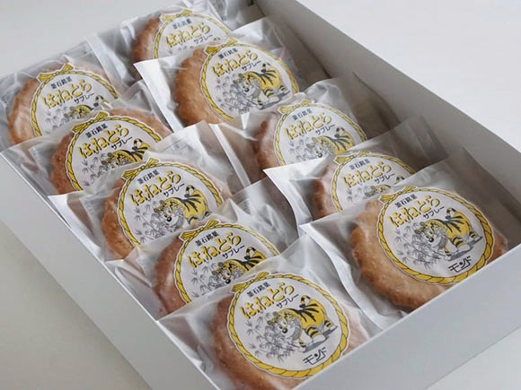 虎舞には「遊び虎」「はねとら」「笹ばみ」の3つがあり、中でも勇猛果敢な踊りとされるはねとらをイメージして作られたのが、はねとらサブレー。