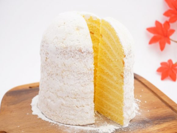 鐘型のケーキは、まるで雪が積もっているかのように真っ白!