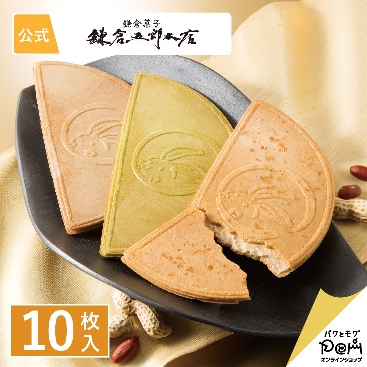 鎌倉五郎が手がける、その名の通り「半月」の形をしたおせんべいです。おせんべいの間に抹茶と小倉の2種類のクリームをはさんでいます。