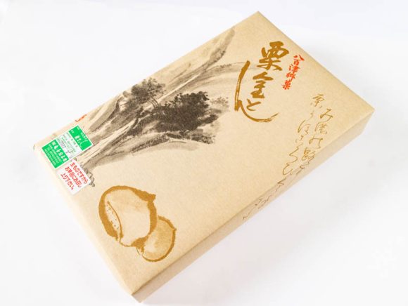 包装紙を開くと、栗のイラストの掛け紙がかかっています。