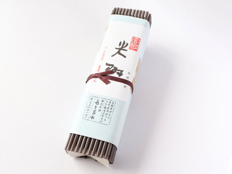 可愛らしい紙の包みを開けると、中からは「光琳」の説明が書かれた紙と、丁寧にすだれで包まれた羊羹が登場します。
