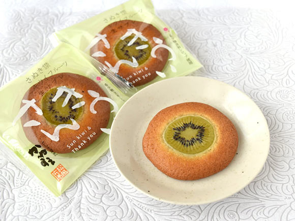 輪切りのキウイのほか、サブレの中にキウイを用いた餡がはいっています。