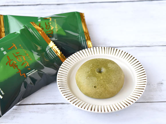 抹茶とオリーブが口の中で交じり合う、大人向けのお饅頭だと思います。