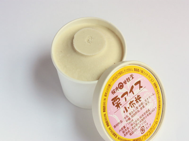 「桜井甘精堂 栗アイス小布施」は、伝統の栗あんをふんだんに使ったアイスクリーム。