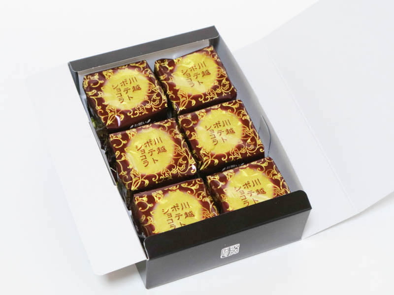 川越ポテトショコラは、チョコレート味のスイートポテト。プレーンなスイートポテト「川越ポテト」の姉妹品です。