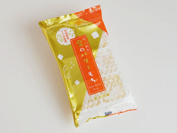 秋田市にある川口屋の金のバターもちは、秋田県産のもち米を使用。